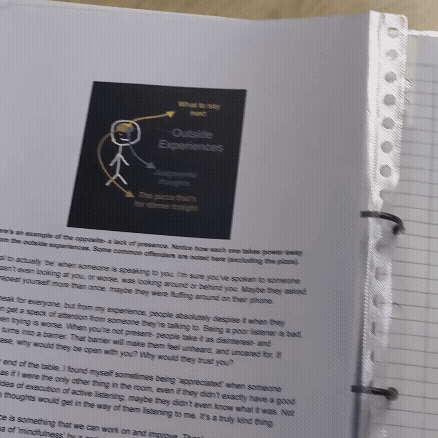 The Active Listening Toolkit is an interactive PDF in little bite-sized chunks that contains what you need to consistently practise active listening...Turning it from a cool trick into a second nature skill...You can read it on your computer, laptop, tablet or phone, or you can print it and use a physical version.Inside, you'll find it covers a topic, then has questions and actionable steps for each one to turn it into a real skill that you can use.It's designed to take 5-10 minutes a day for a few weeks.